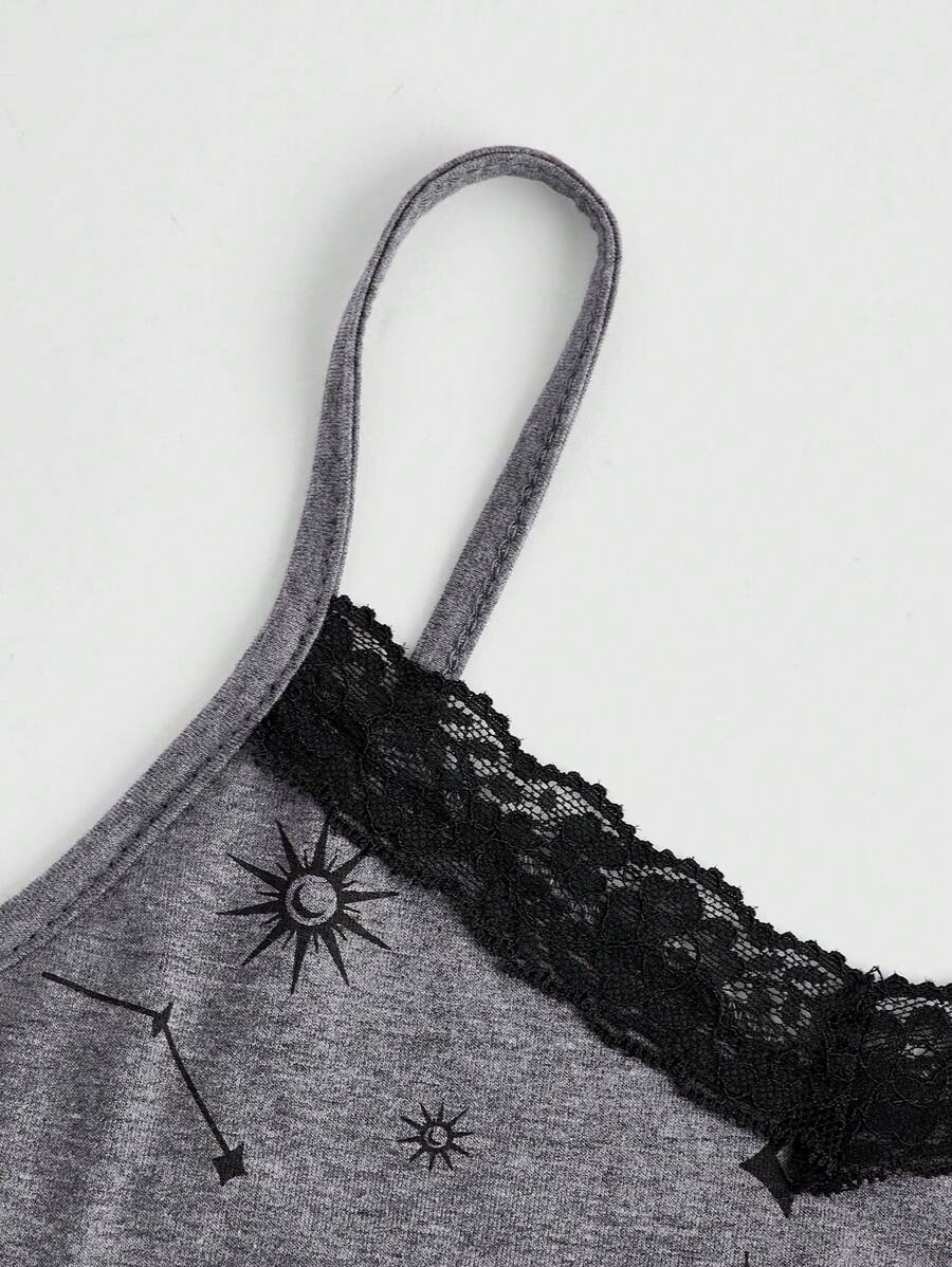Hippie Top De Camisola Con Encaje Y Estampado De Hadas Y Cuerpos Celestiales