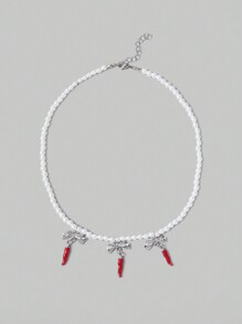 Hippie Collar de perlas con diseño único y creativo de pimiento rojo de moda