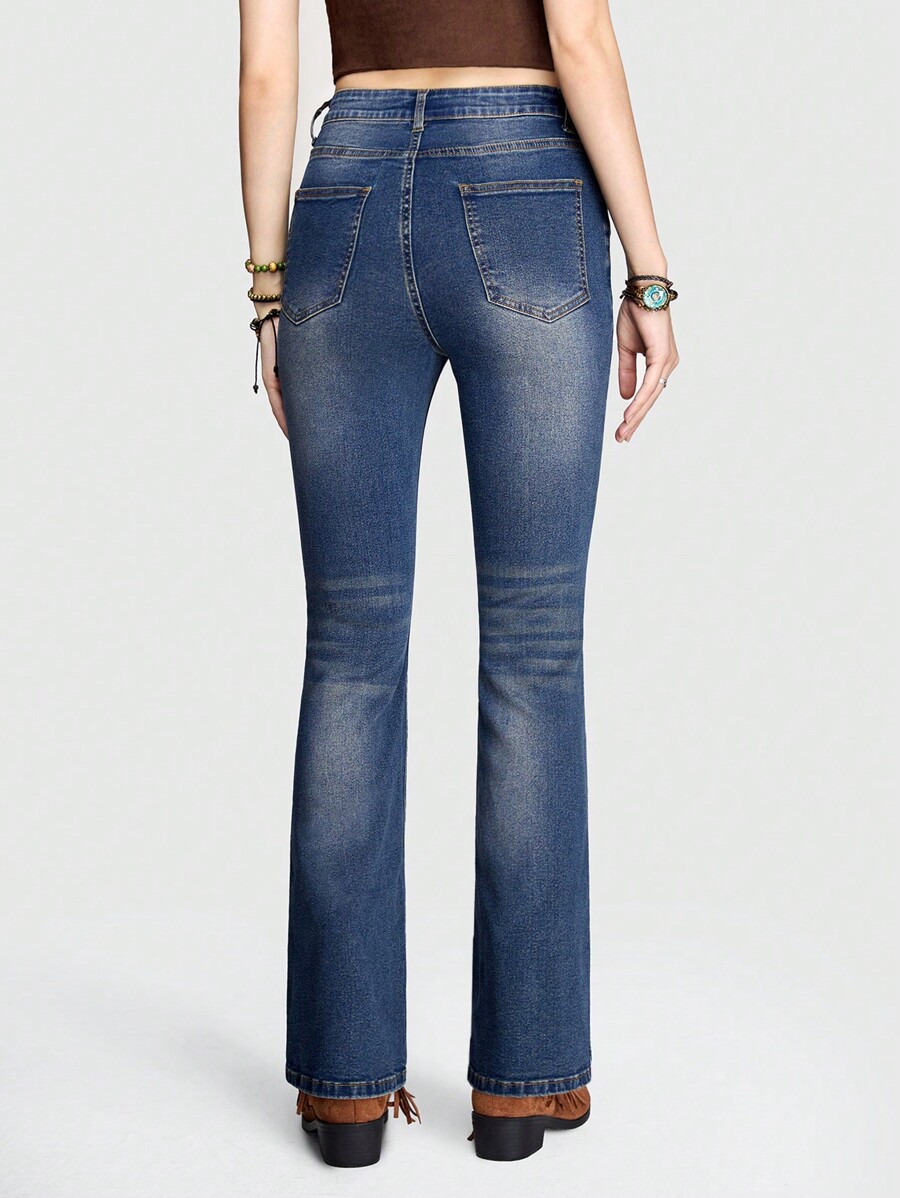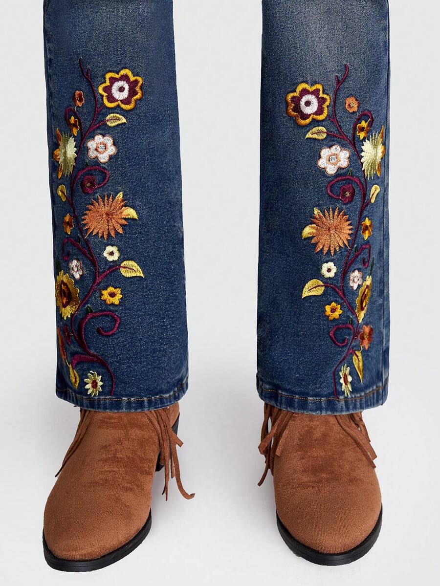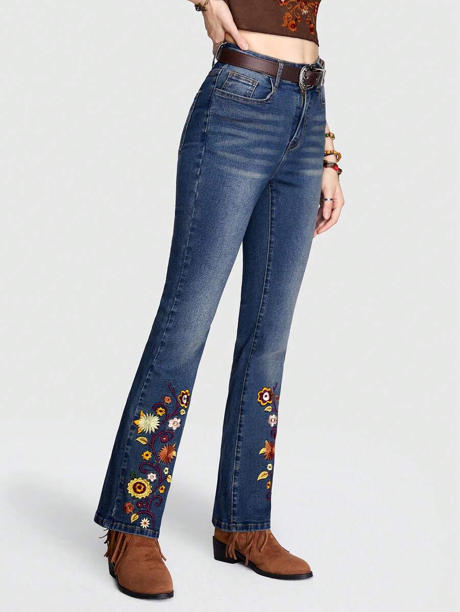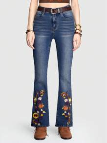 Jeans acampanados con banda de estilo hippie vintage de los 90 con bordado floral