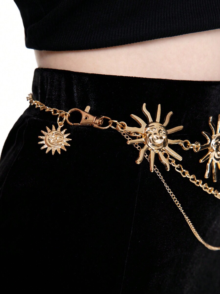 Hippie Accesorio gótico, punk, sexy y años 2000 de uso callejero, cadena multilargar hueca con diseño de girasol