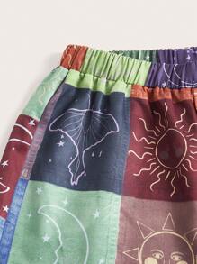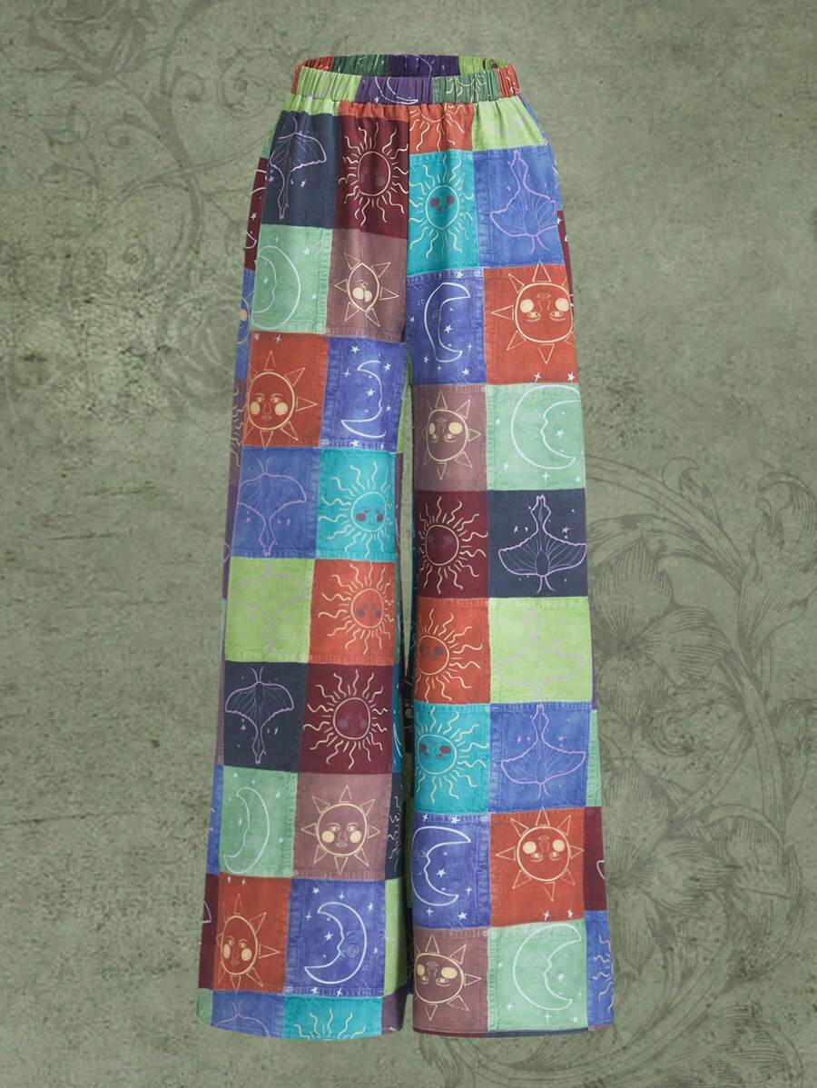 Hippie Pantalones de pierna ancha con estampado de retazo