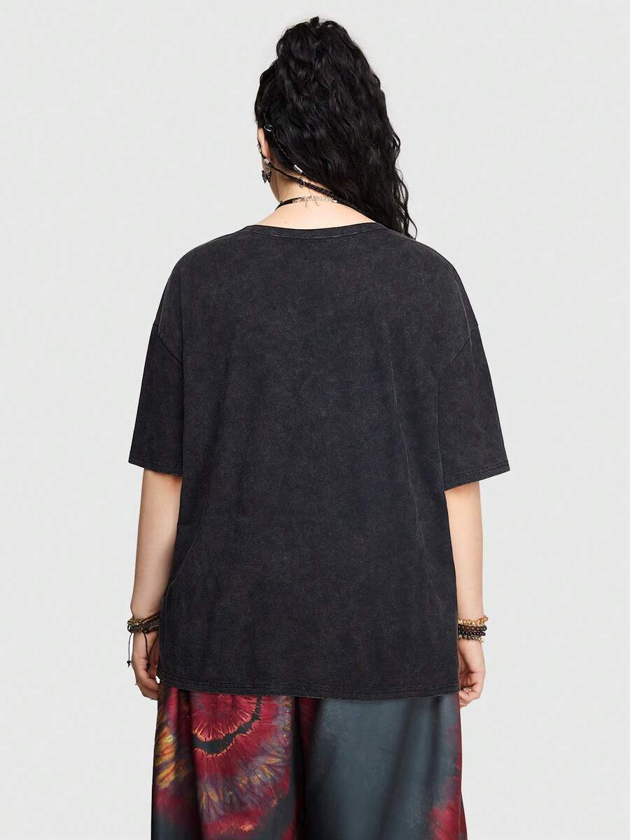 Hippie Talla grande Camiseta de hombros caídos con estampado de letra y dibujos animados