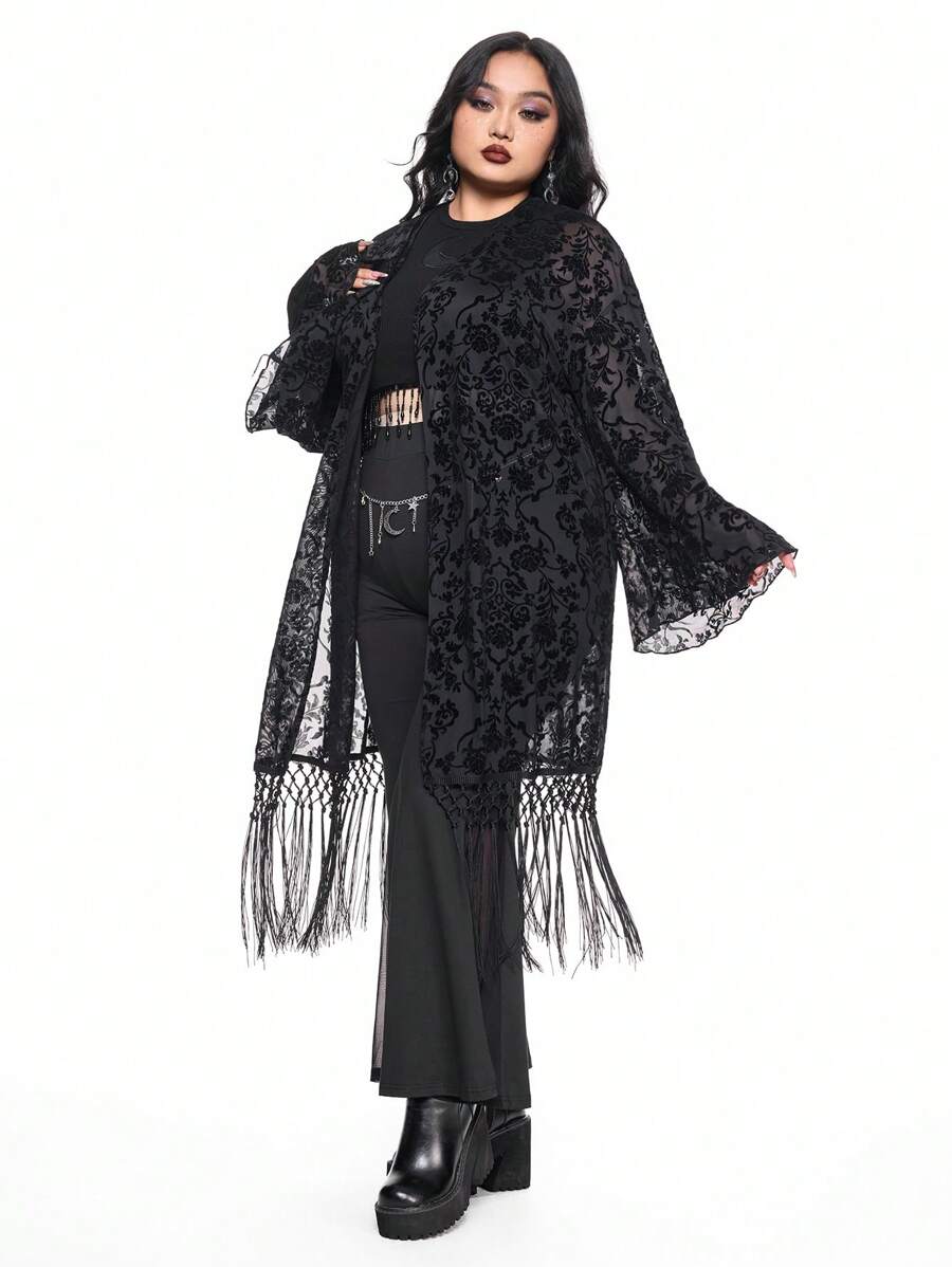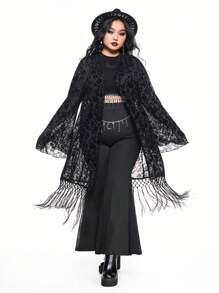 Hippie Cárdigan largo con decoración de flecos para mujer de talla grande