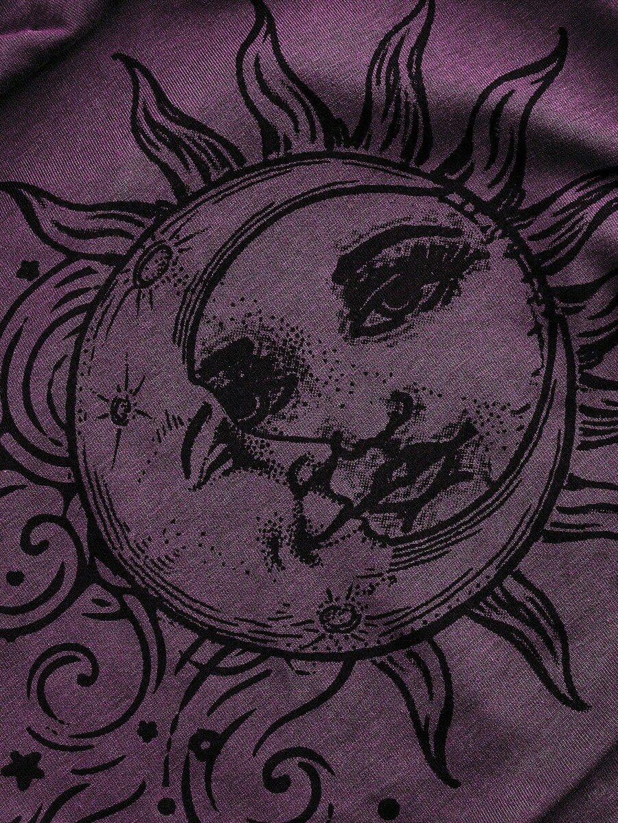 Top bandeau fruncido con estampado de luna y sol, estilo hippie para mujeres