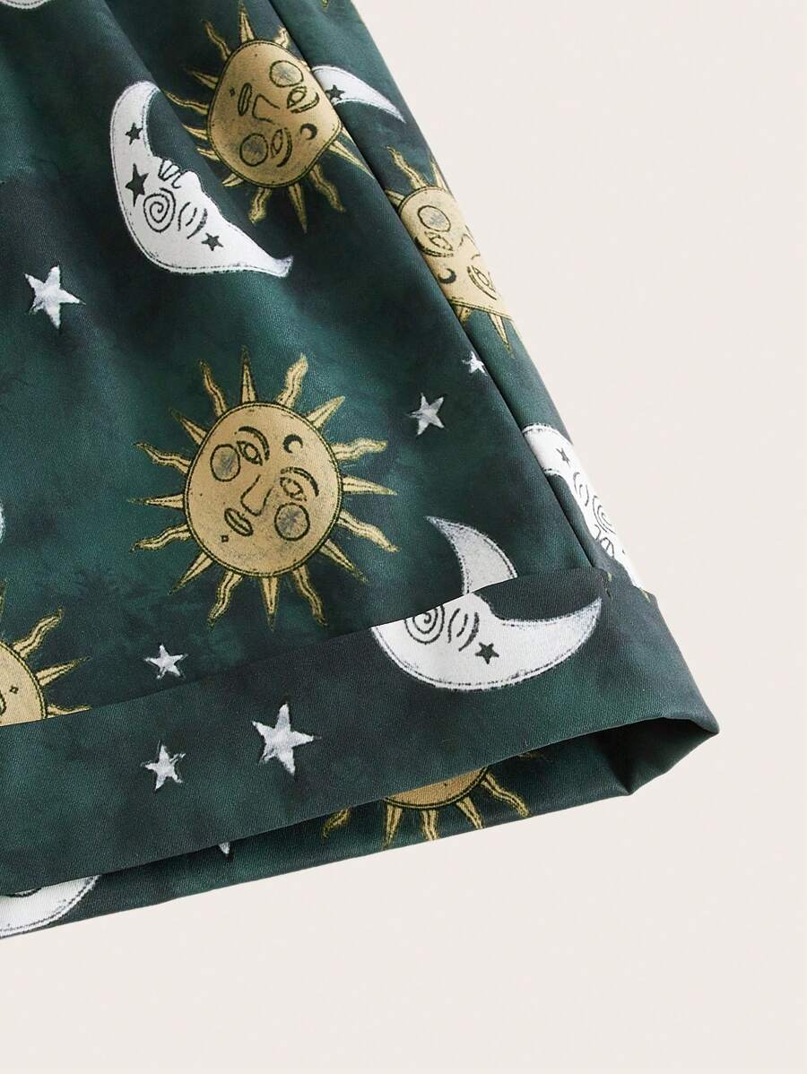 Hippie Shorts de tie dye con estampado de sol y luna de cintura con nudo