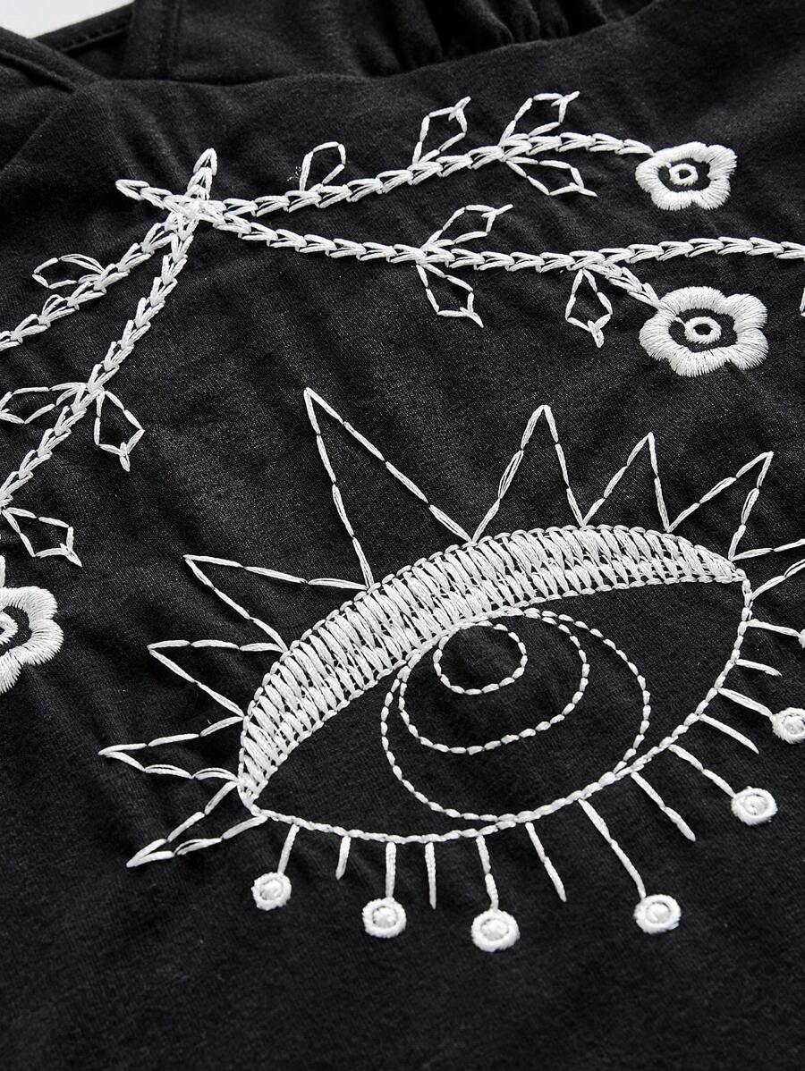 Hippie Vestido de cola de pez con estilo vintage de bruja para mujeres con bordado de ojos y patrón floral