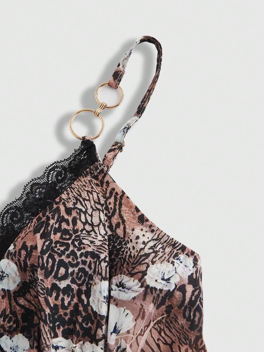 Camiseta de tirantes con estampado de leopardo, lazo de cinta y ribete de encaje, estilo hippie para mujer