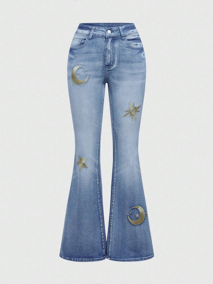 Hippie Jeans de moda casual con bolsillo bordado de luna para mujer