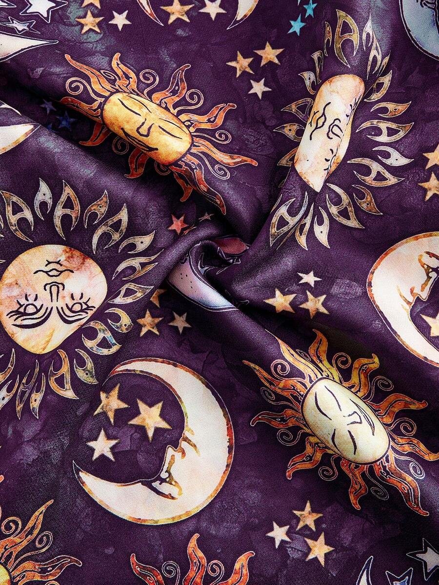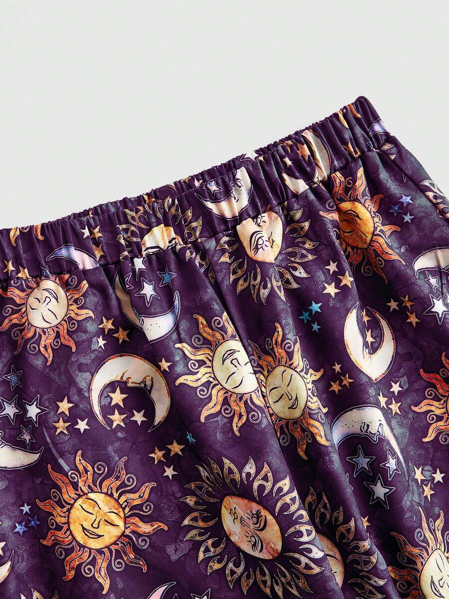 Hippie Pantalones Anchos De Talla Grande De Mujer Con Diseño De Sol, Luna, Estrellas Y Galaxia