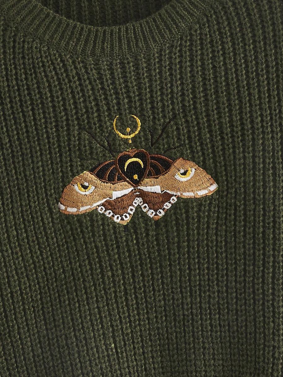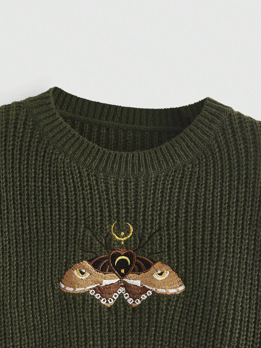 Hippie Jersey De Mujer Con Cuello Redondo Y Hombros Caídos Con Bordado De Polilla