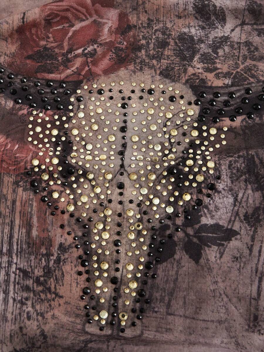 Hippie Blusa de mezclilla estilo occidental con totem para mujer, adornada con ribetes de pedrería