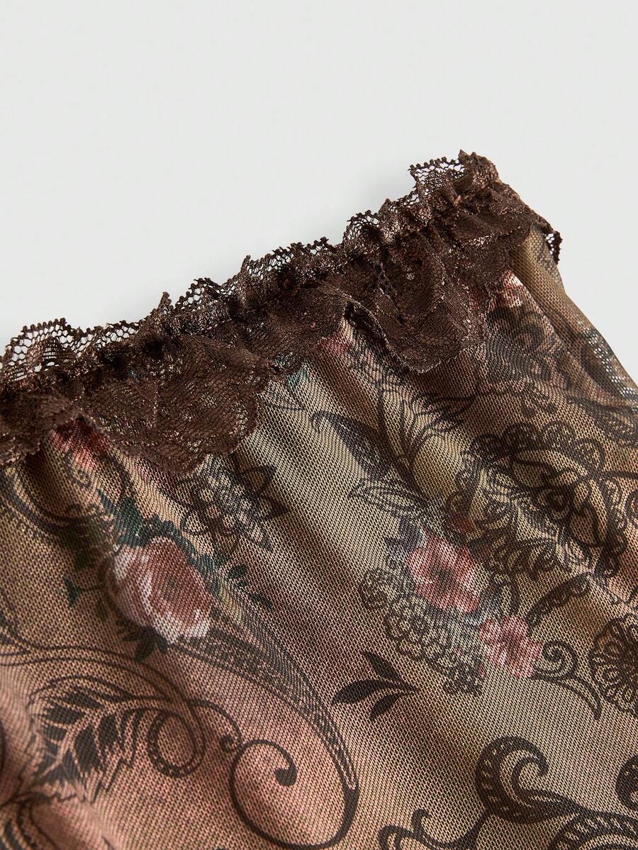 Falda mini de cintura baja con volantes, cinta y encaje, con estampado de cachemira en estilo vintage hippie para mujer