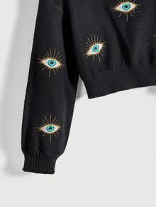 Suéter de punto con cuello alto, bordado y gráfico de ojo, estilo vintage hippie para mujer
