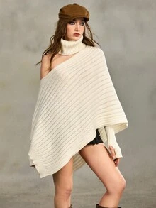 Hippie Cubre con bajo asimétrico vintage del milenio Y2K para mujer, suéter versátil para capas