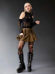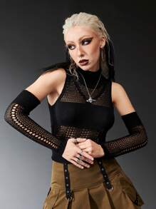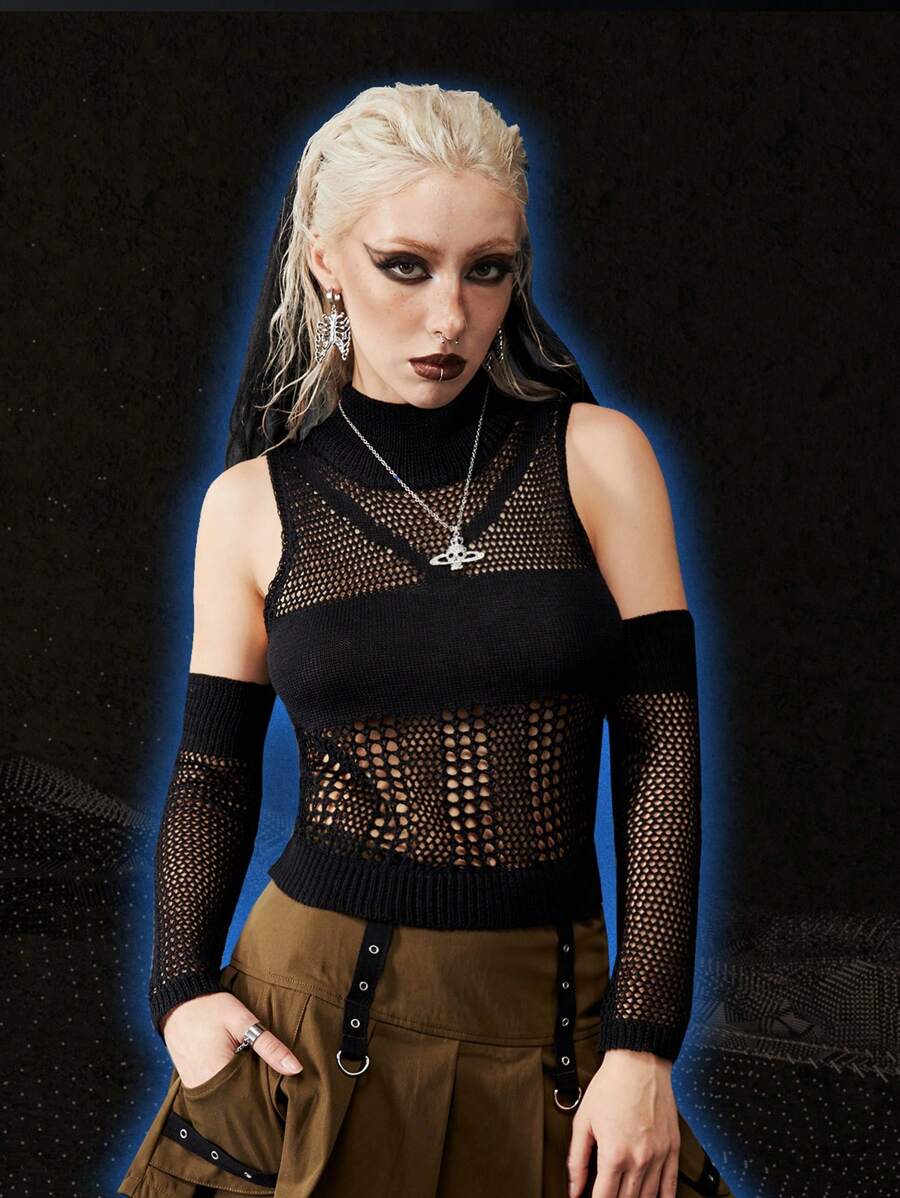Grunge Punk Top de punto con abertura con mangas de brazo