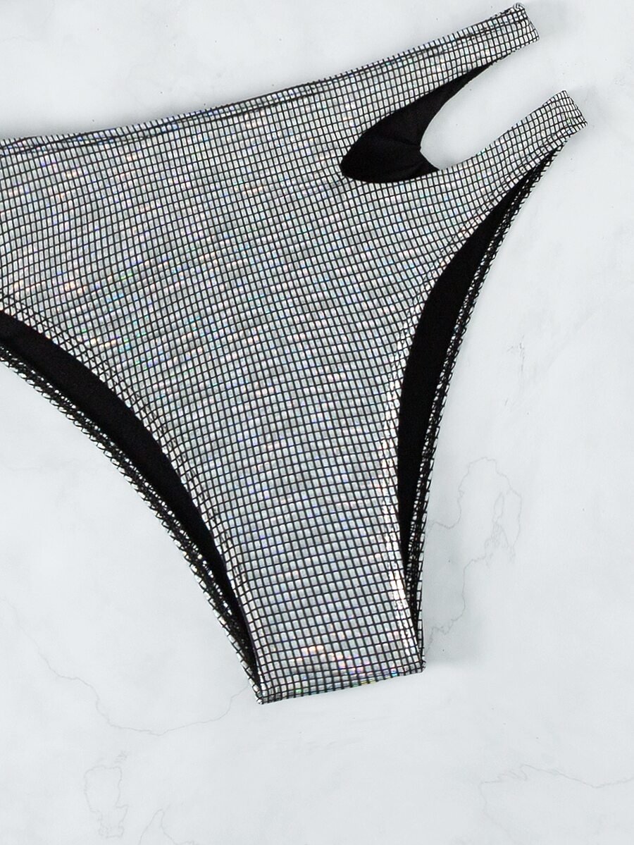Conjunto de bikini de verano de playa holográfico con recortes y un solo hombro