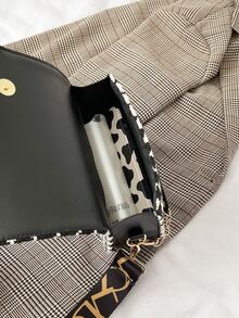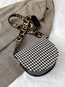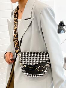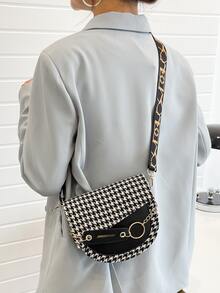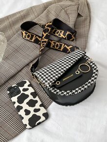 Bolso sillín con solapa con estampado de pata de gallo y letra