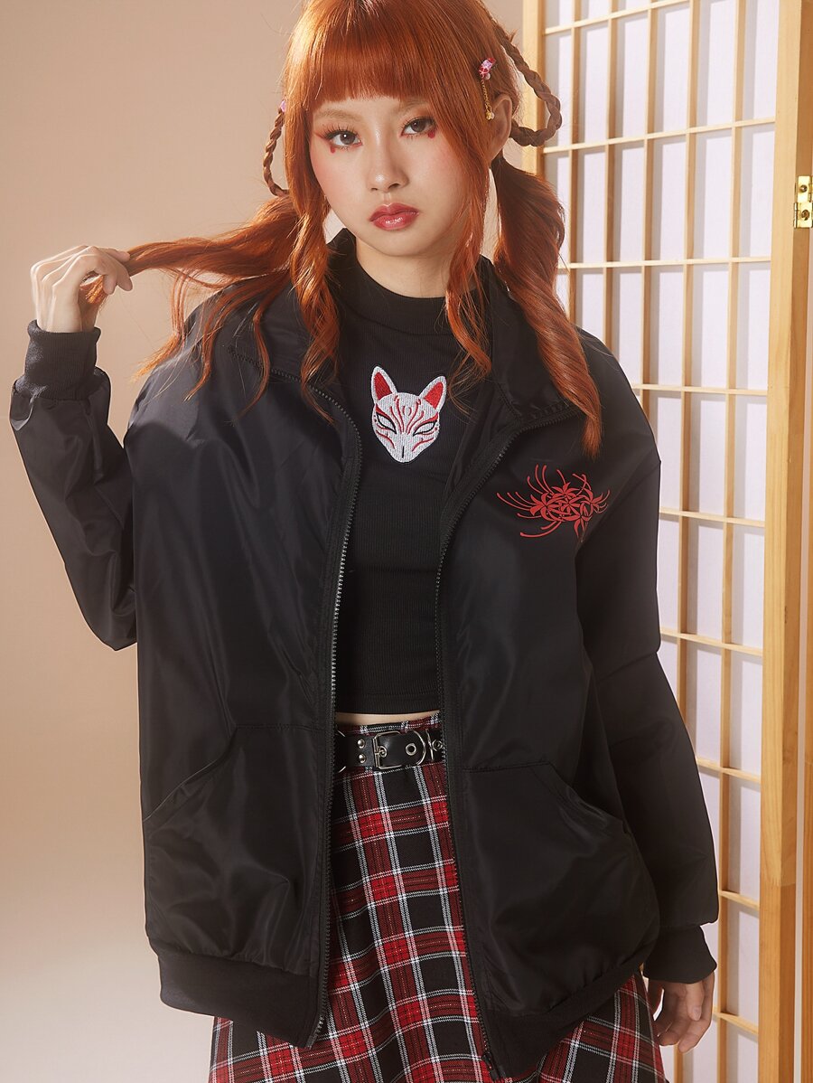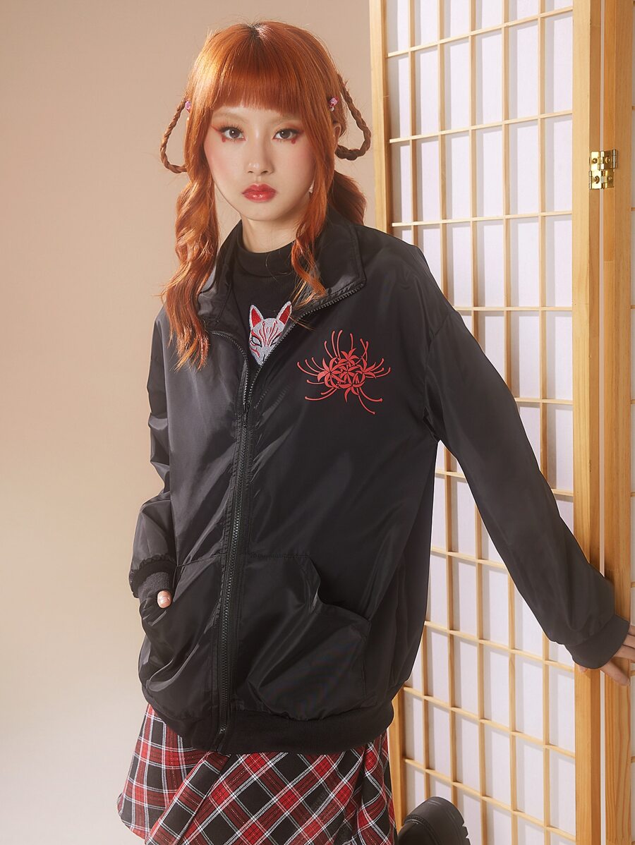 J-Fashion Cazadora con estampado de dibujo con cremallera