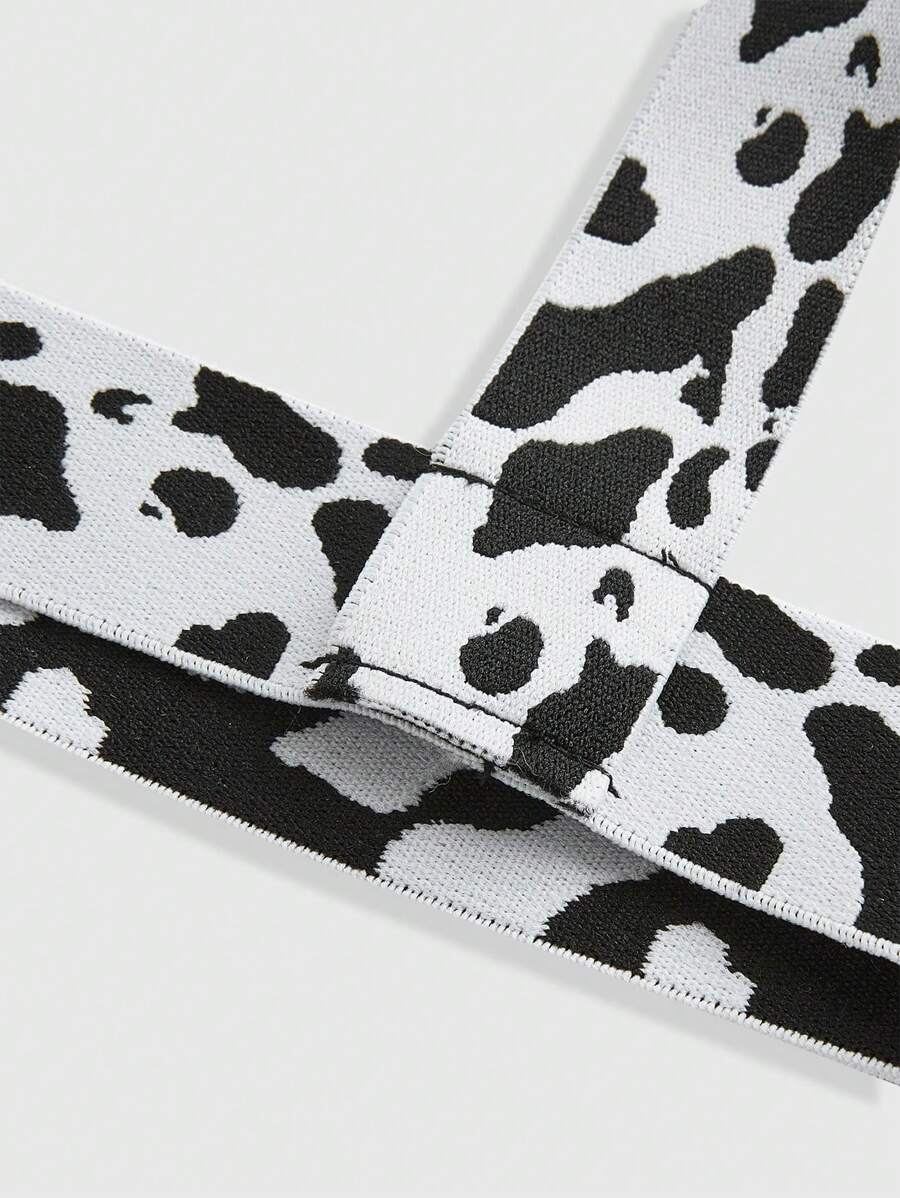J-Fashion Conjunto de 2 piezas de ropa interior sexy para mujer con patrón de vaca encantador y correa elástica