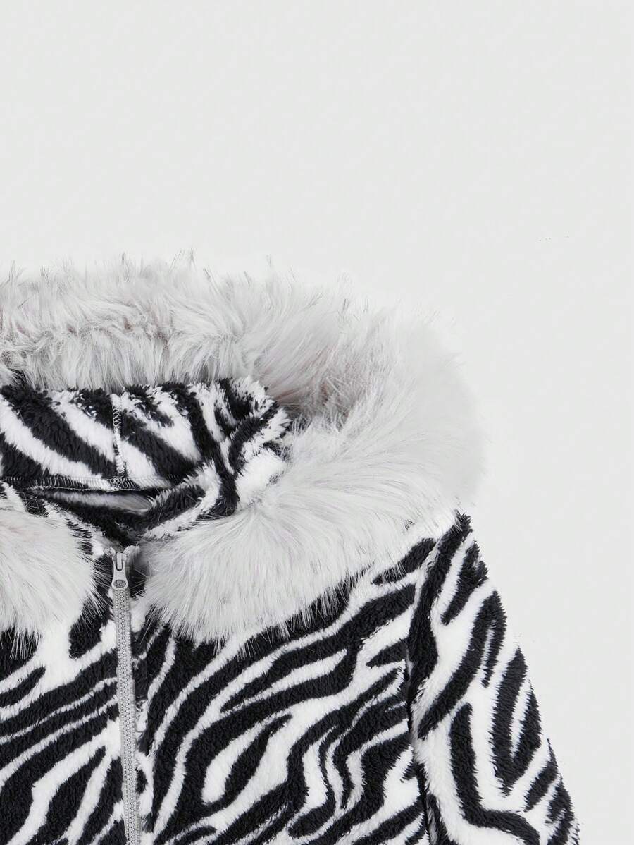 J-Fashion Sudadera con capucha esponjosa con estampado de cebra estilo Harajuku Y2K de talla grande