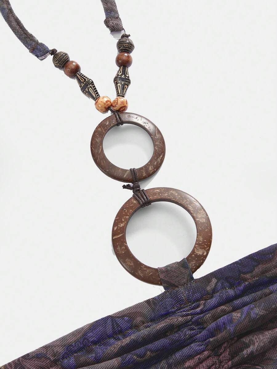 J-Fashion Top corto halter sin espalda con estampado de flores de anacardo retro, estilo hippie
