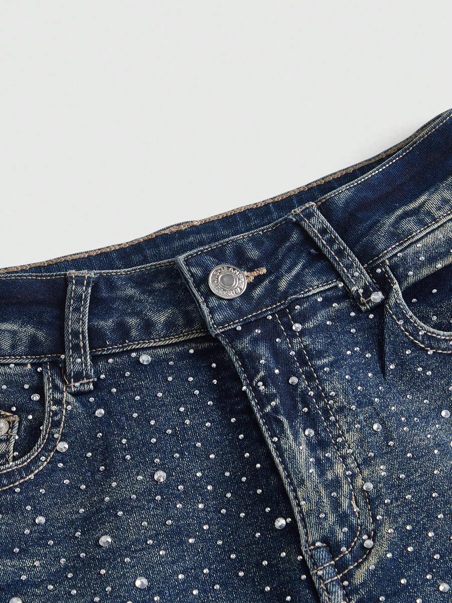 J-Fashion Jeans de mujer ajustados con pierna acampanada y decoración de strass