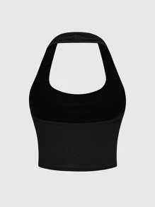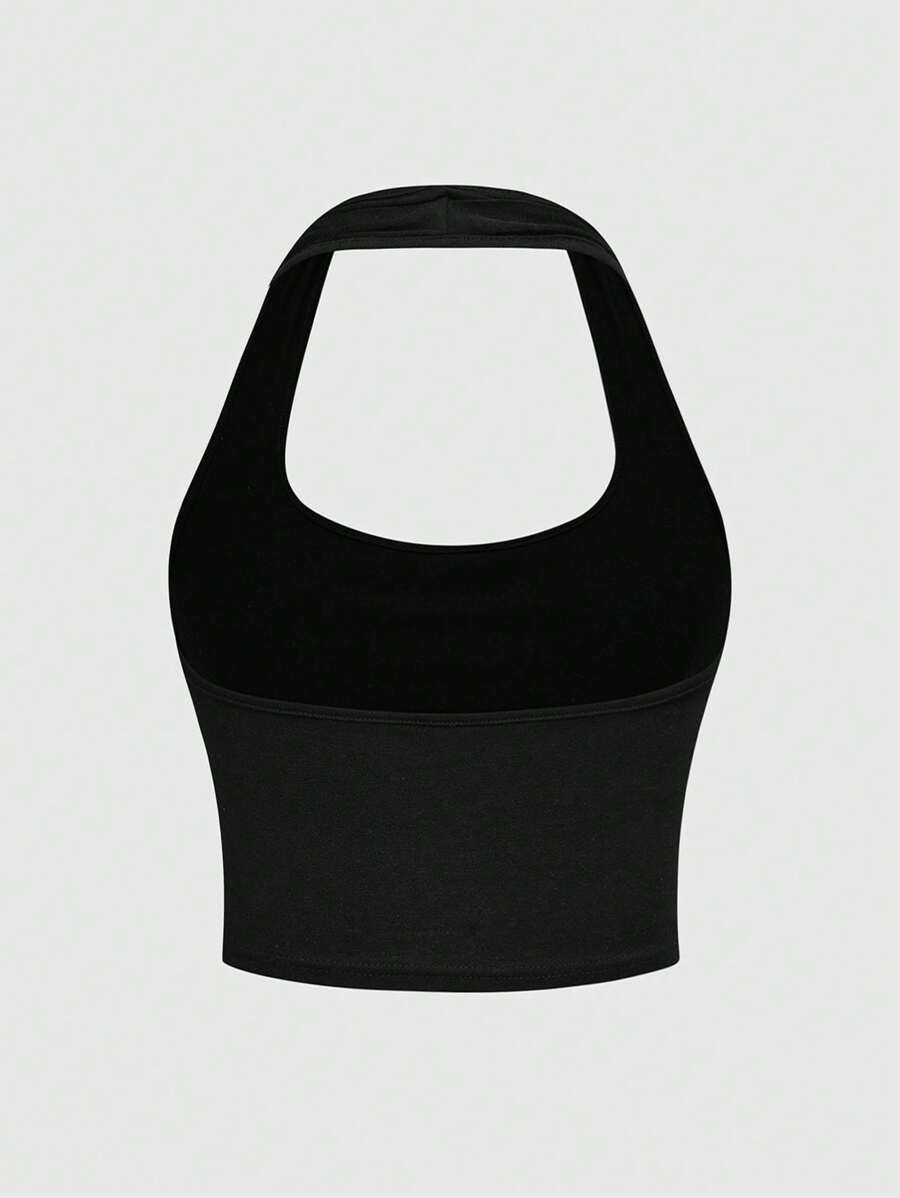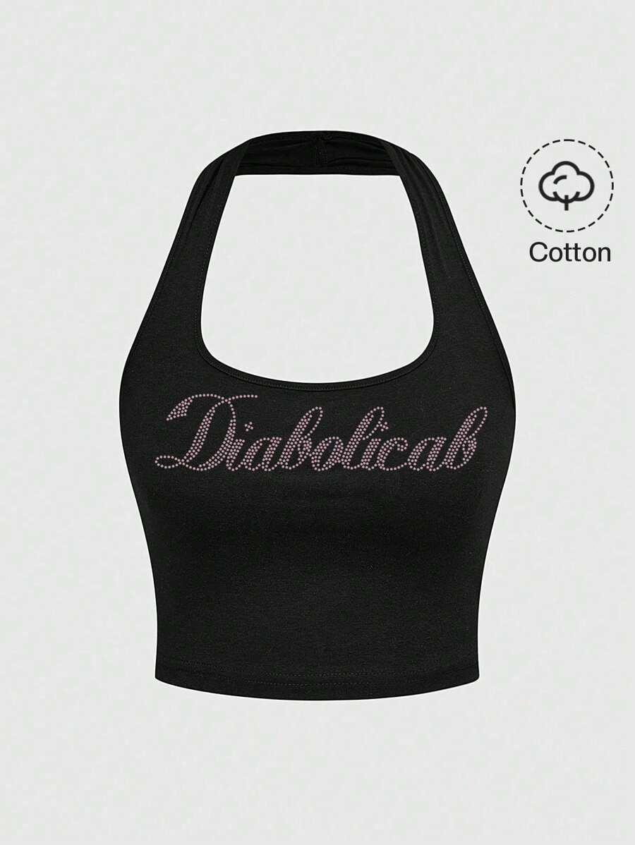 J-Fashion Top de tirantes con cuello de halter con eslogan de strass para mujeres