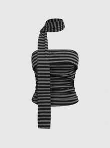 J-Fashion Conjunto de 2 piezas para mujer compuesto por top tubo bandeau a rayas y pañuelo para el cuello, con estilo sexy para festivales de música rock