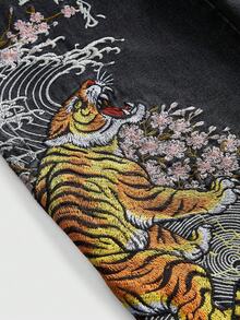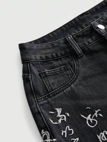J-Fashion Jeans rectos de pierna extra larga, con lavado desgastado, bordado de estilo chino y corte oversize, unisex
