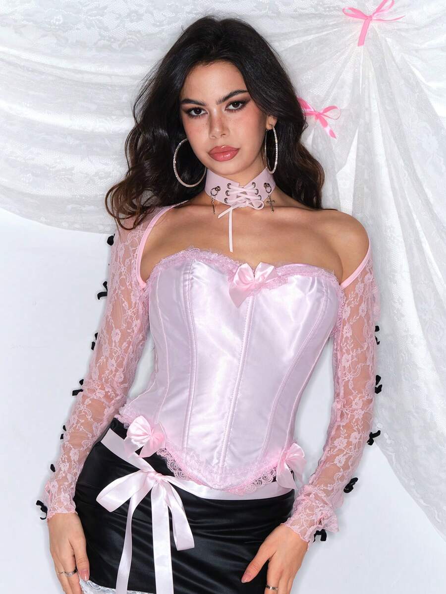 J-Fashion Cubrecuerpo sexy con lazo y calado para el Día de San Valentín