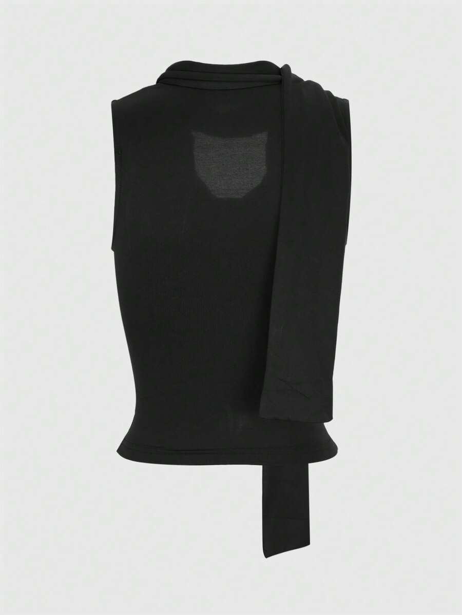 J-Fashion Camiseta de tirantes versátil con cuello en pico regular y detalles de tira decorativa