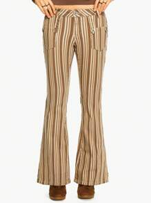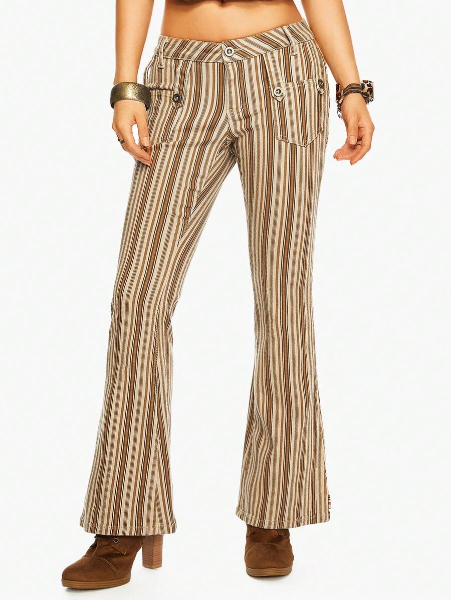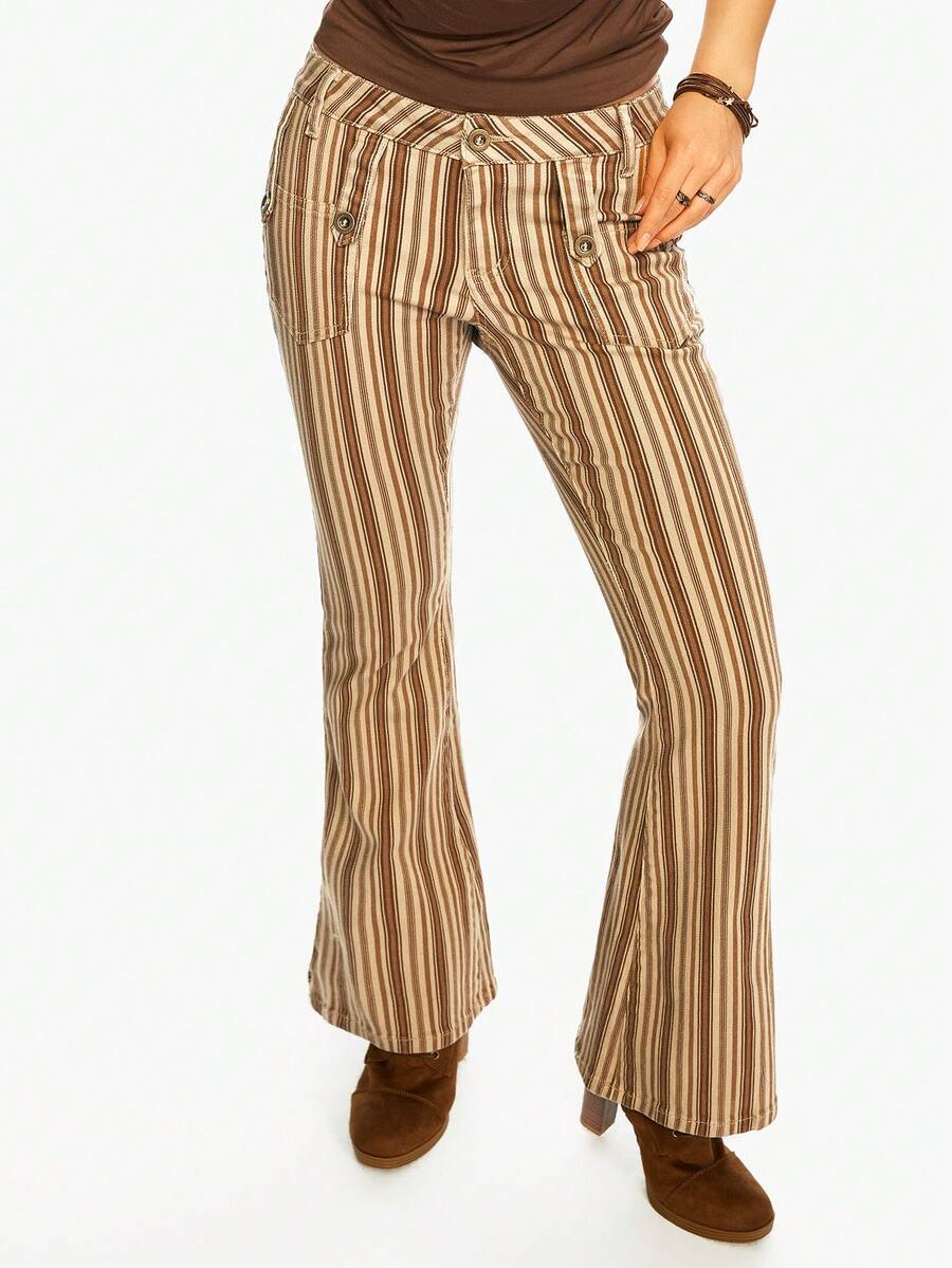 J-Fashion Jeans de mujer de pierna acampanada, con rayas y desgastados con talle bajo, estilo vintage Y2K