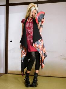 J-Fashion Blusa de mujer con estampado, cuello halter asimétrico y espalda descubierta