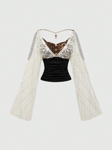 J-Fashion Colgante de cruz metálico estilo Y2K, camiseta de mujer con parche de encaje y estampado de leopardo
