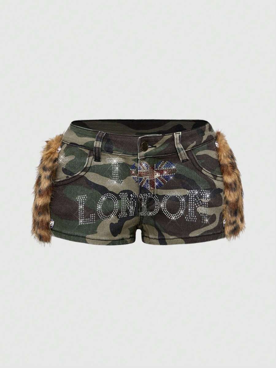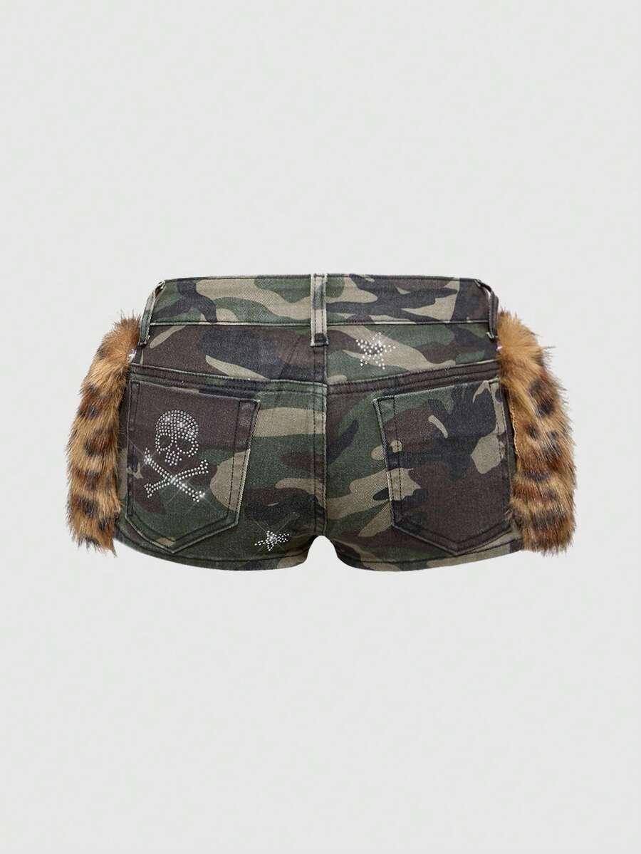 J-Fashion Shorts vaqueros súper cortos y sexys con decoración de parches, estrellas y rhinestones en estilo subcultura de diosa Y2K, tallas grandes