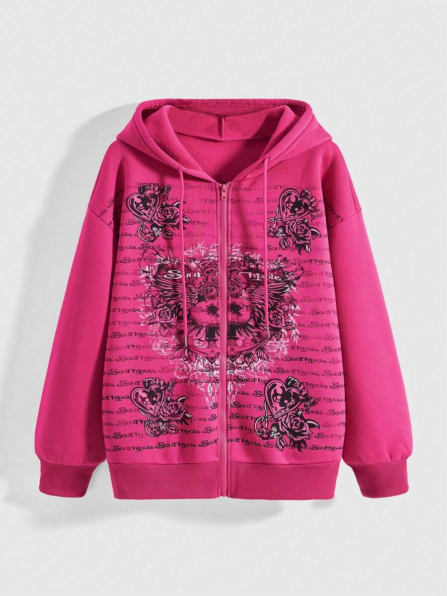 J-Fashion Sudadera oversize con alas en forma de corazón, estilo vintage grunge Y2K