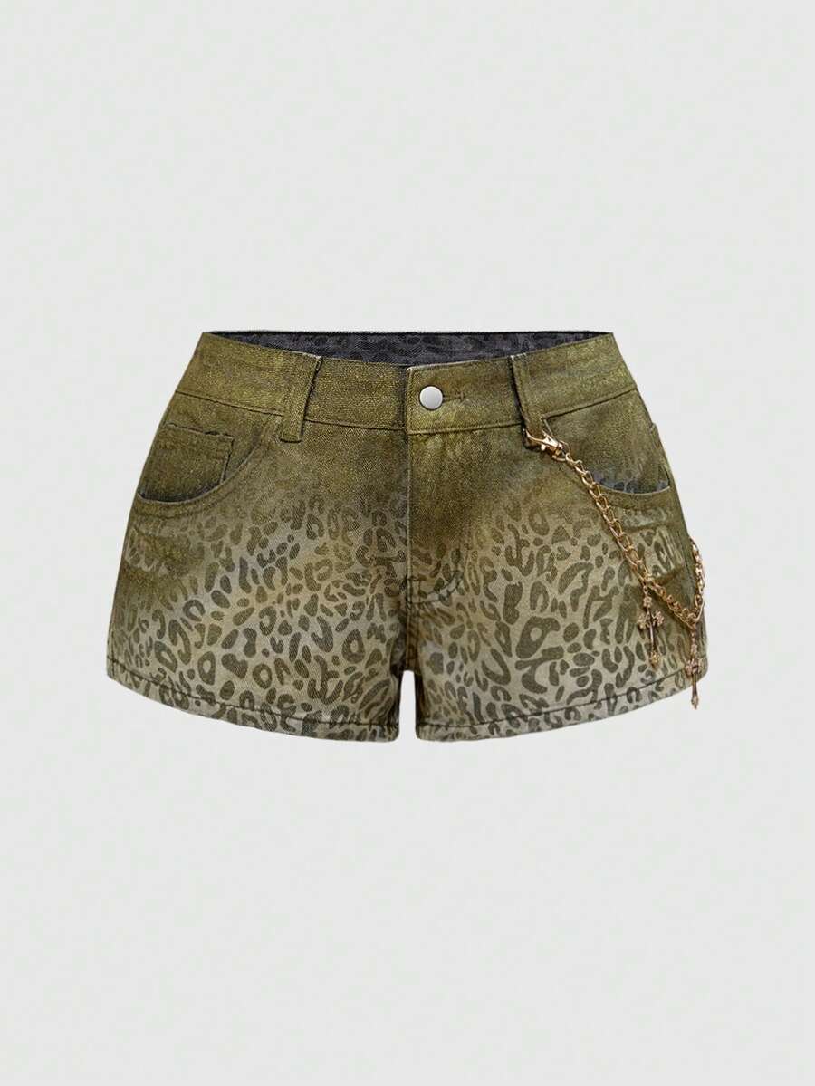 J-Fashion Pantalones cortos vaqueros de tiro bajo y ultrabajo con estampado de leopardo y lámina de oro vintage para mujer de talla grande, estilo Harajuku Gyaru Y2K Millennium