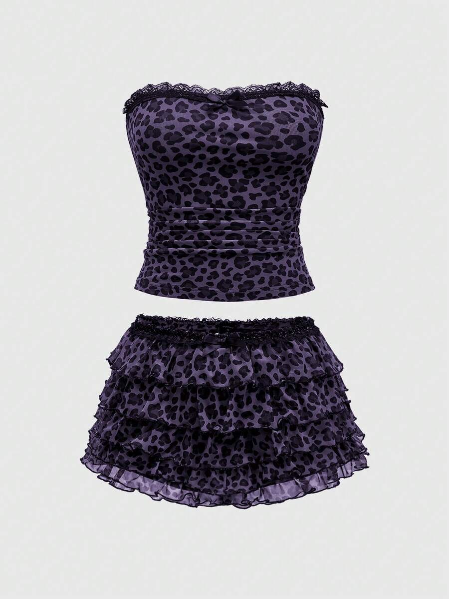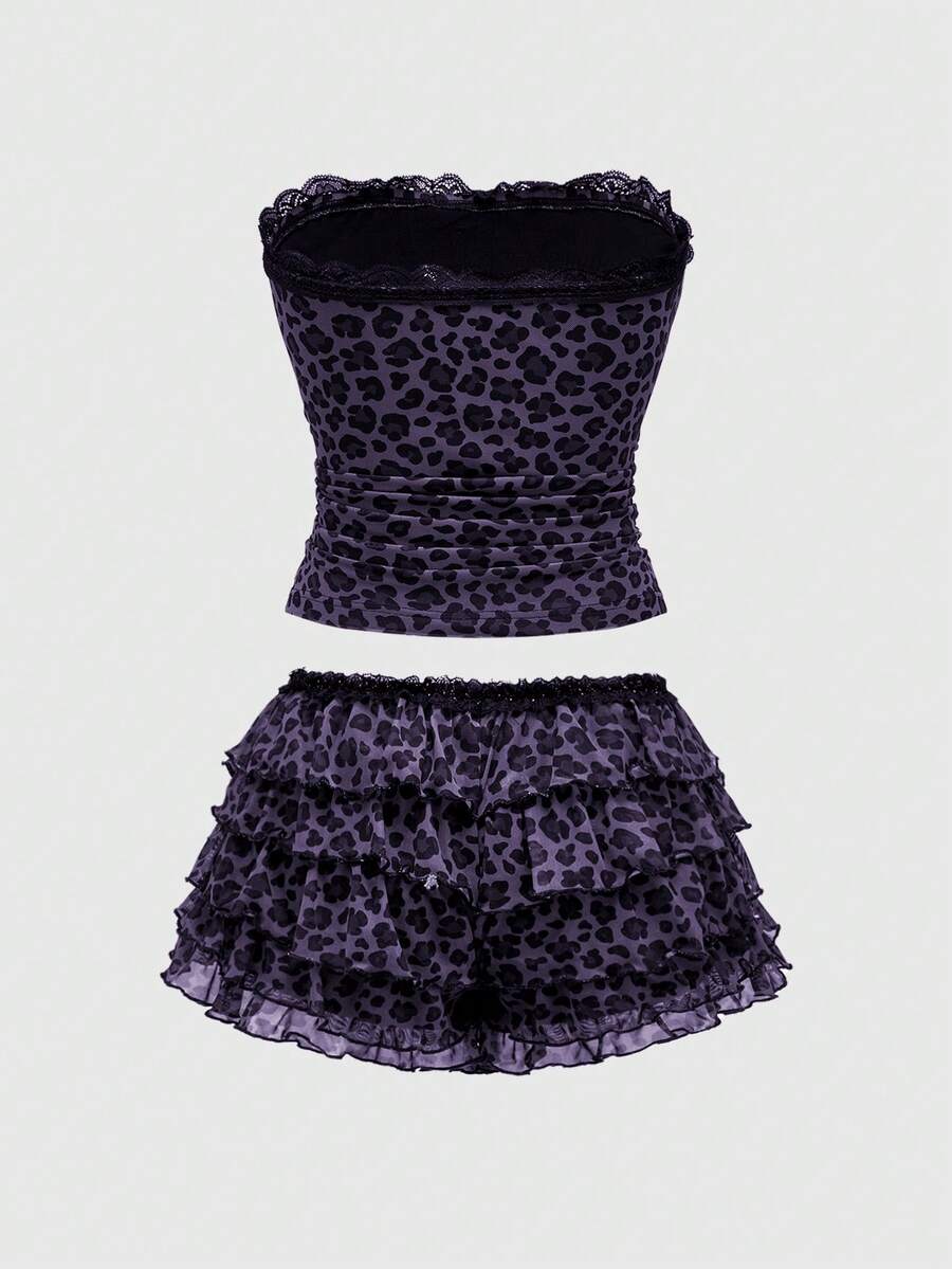 J-Fashion Conjunto de 2 piezas de shorts estilo pastel con estampado de leopardo Y2K para mujer