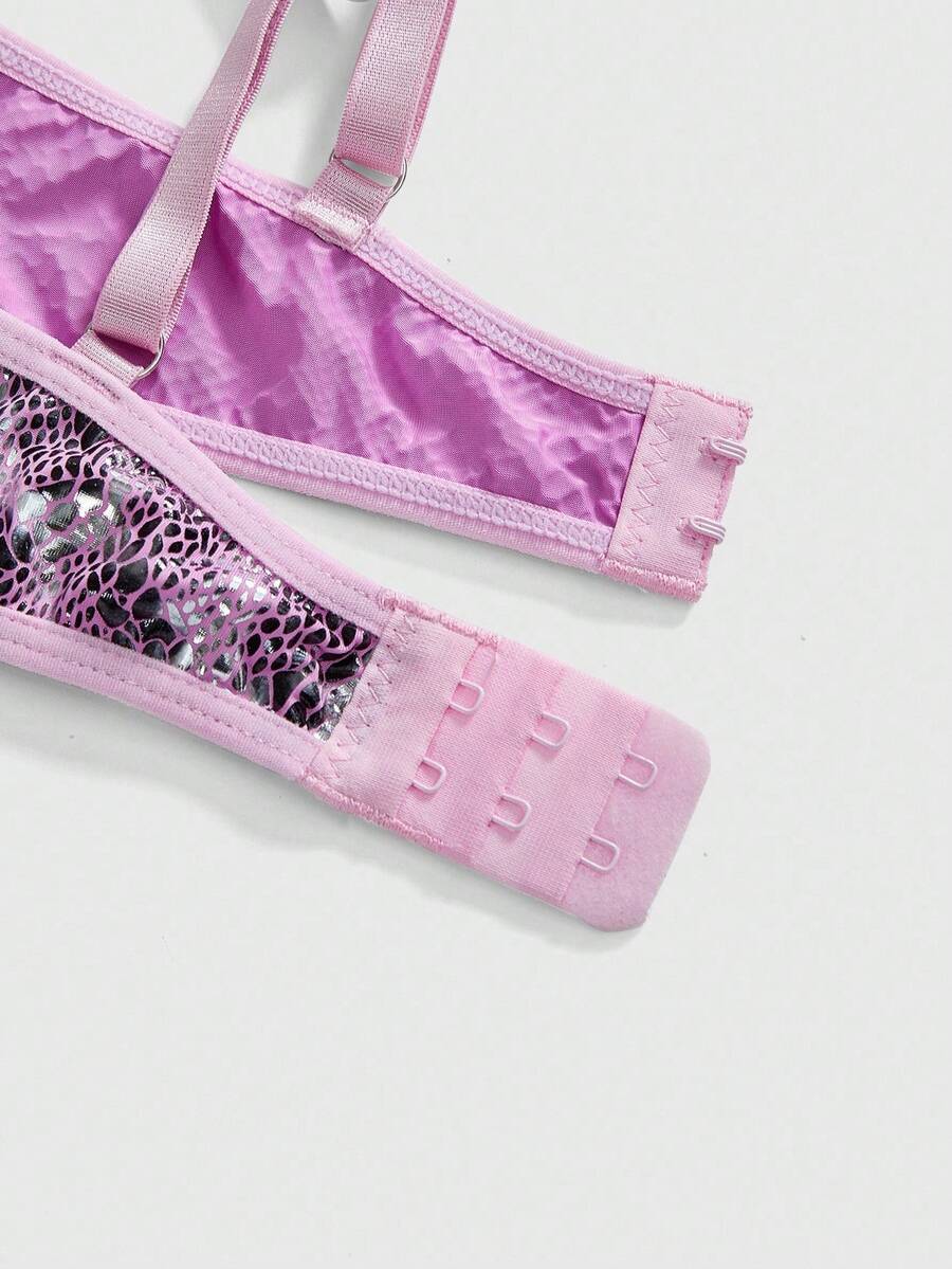 J-Fashion Conjunto de lencería para mujer con estampado de serpiente retro sexy Y2K y hebilla metálica con forma de corazón