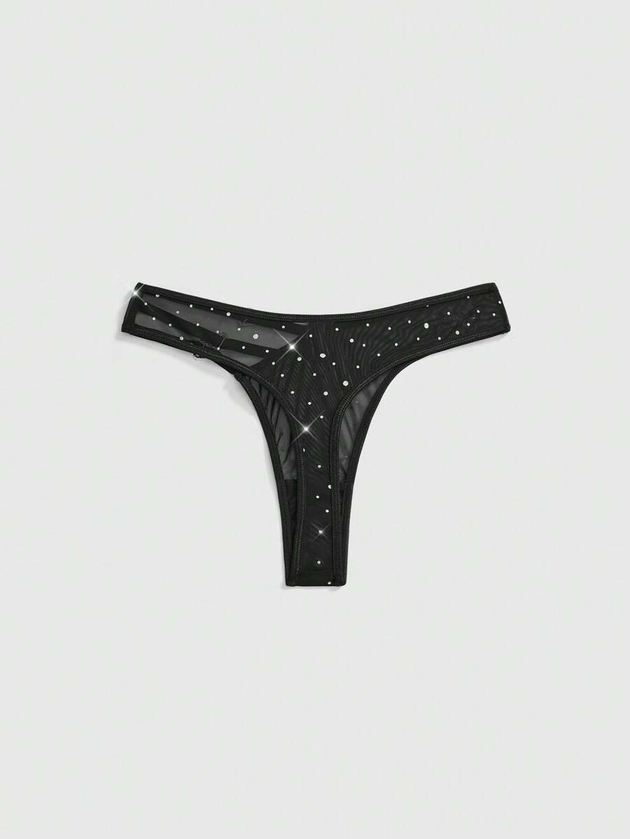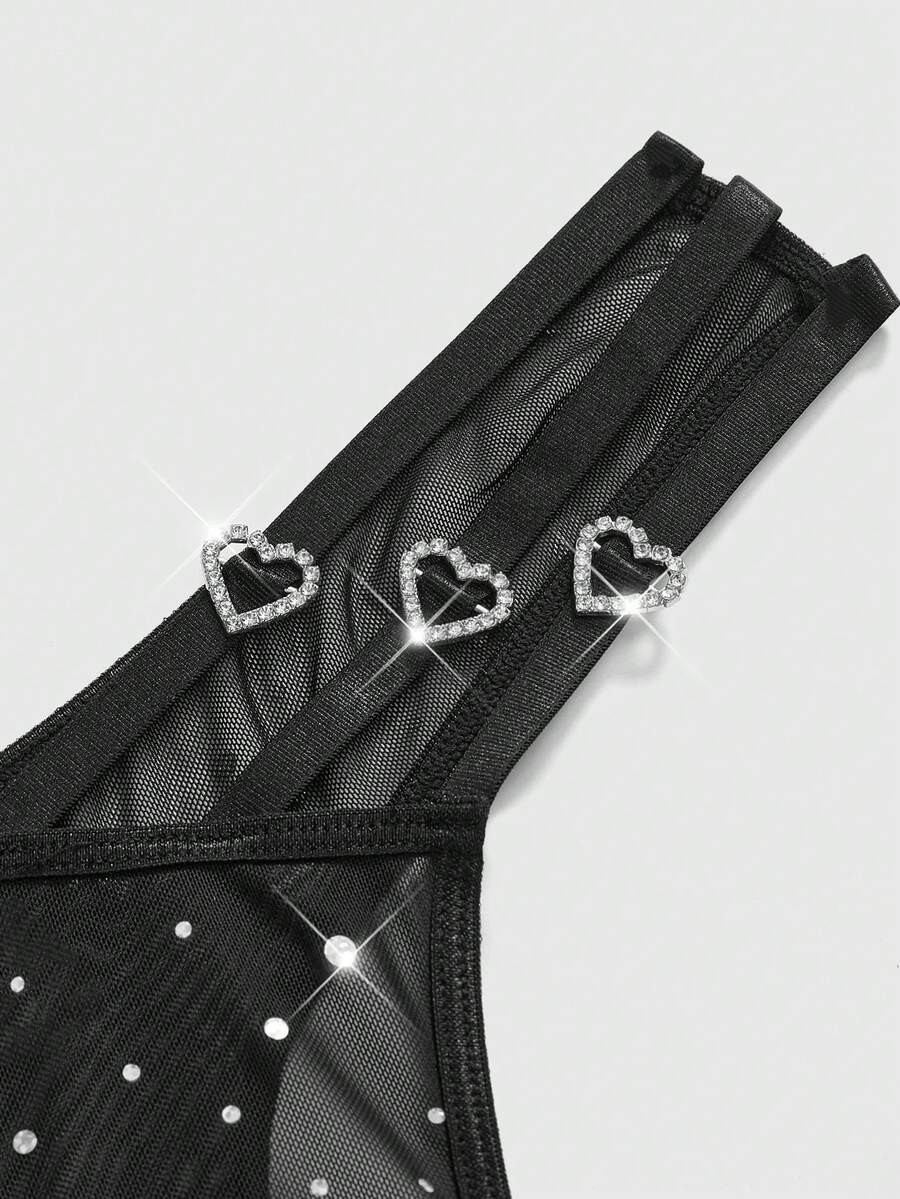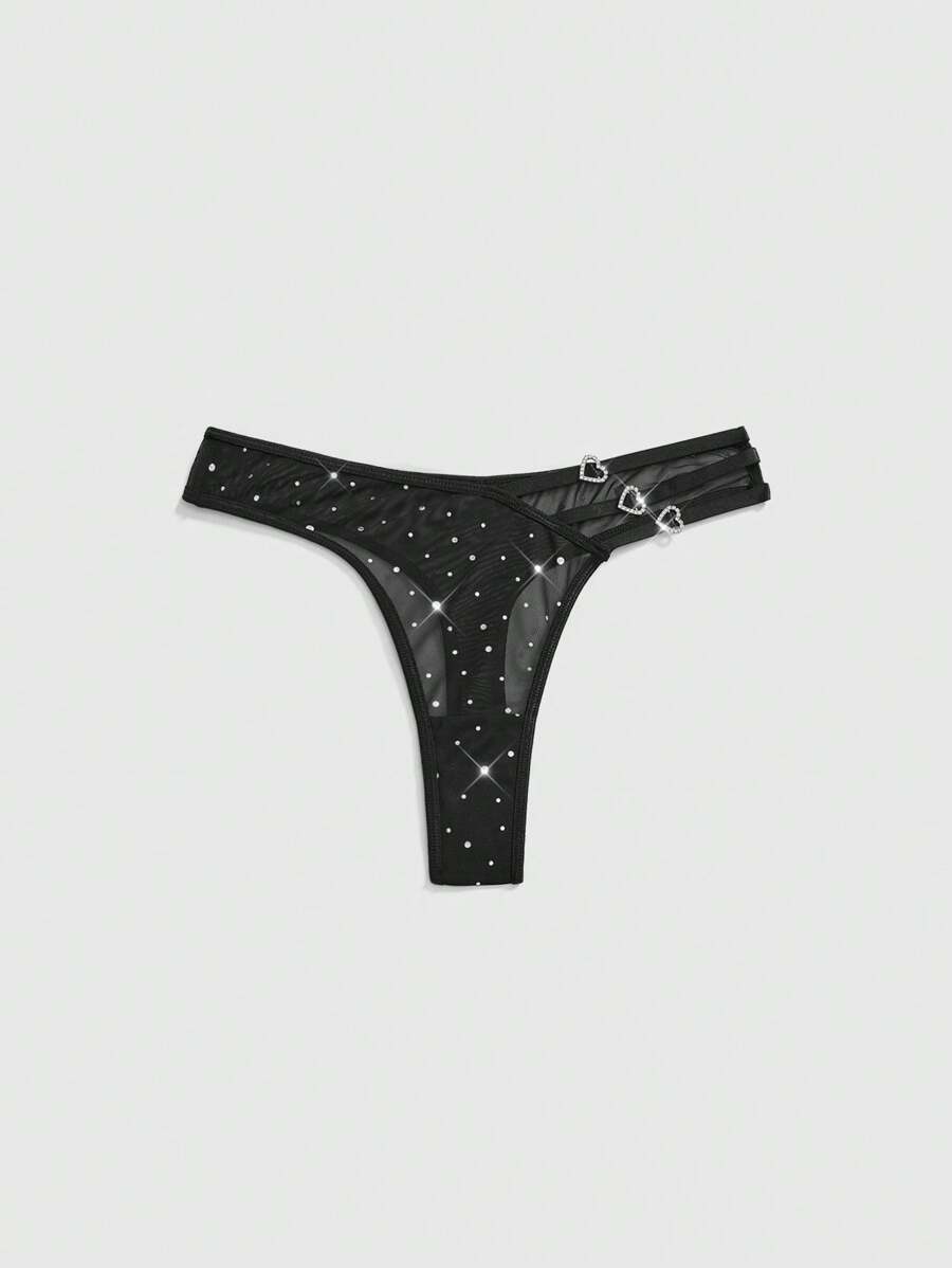 J-Fashion Tanga de mujer con detalles de strass con forma de corazón, estilo Y2K