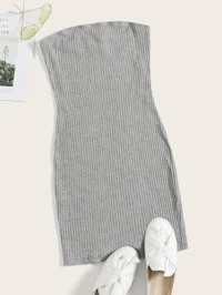 Vestido de punto acanalado de un solo color con dobladillo dividido para salidas de verano