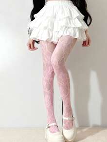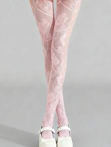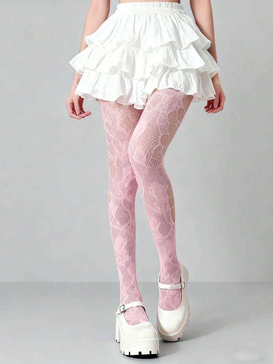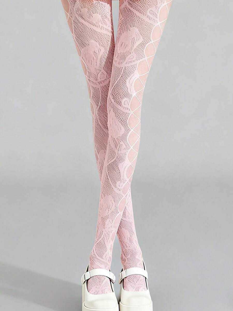 Kawaii 1 par de calcetines de red de pesca de doble cara, medias transparentes elásticas con patrón de enredadera de rosa rosa retro y sexy