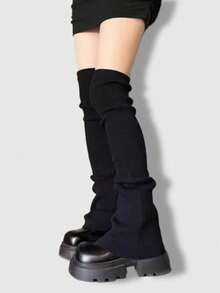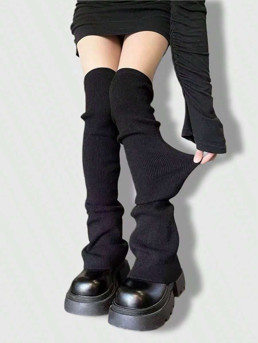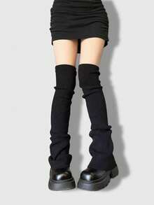 Kawaii 1 par de calentadores de piernas extra largos a rayas para mujer, cálidos