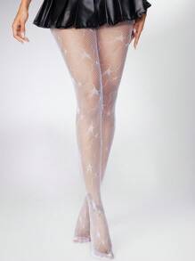 1 par de medias de red sexis con diseño de estrella, mallas transparentes elásticas