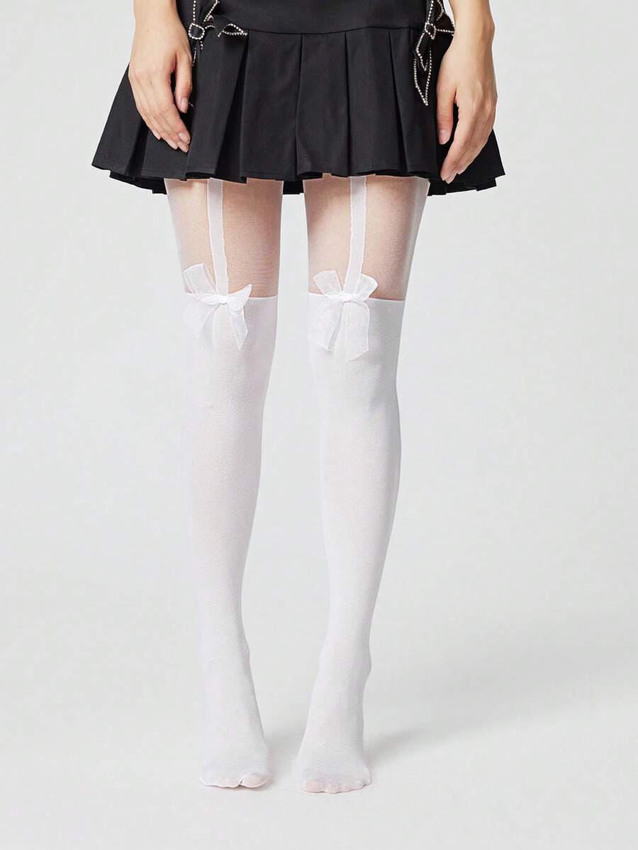 Kawaii 1 par de medias opacas de unicolor y estilo sencillo para mujeres, apropiadas para todas las estaciones