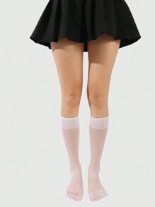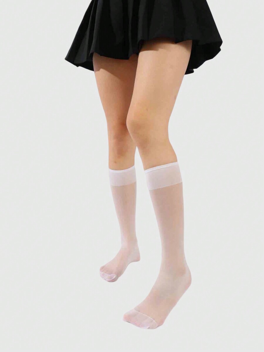 Kawaii 1 par de calcetines de seda media pantorrilla blancos con parches para mujer, multiestación