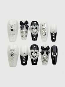 Kawaii 10 piezas de calcomanías de uñas con forma de lazo de corazón de oso transparente oscuro y 1 pieza de cinta adhesiva