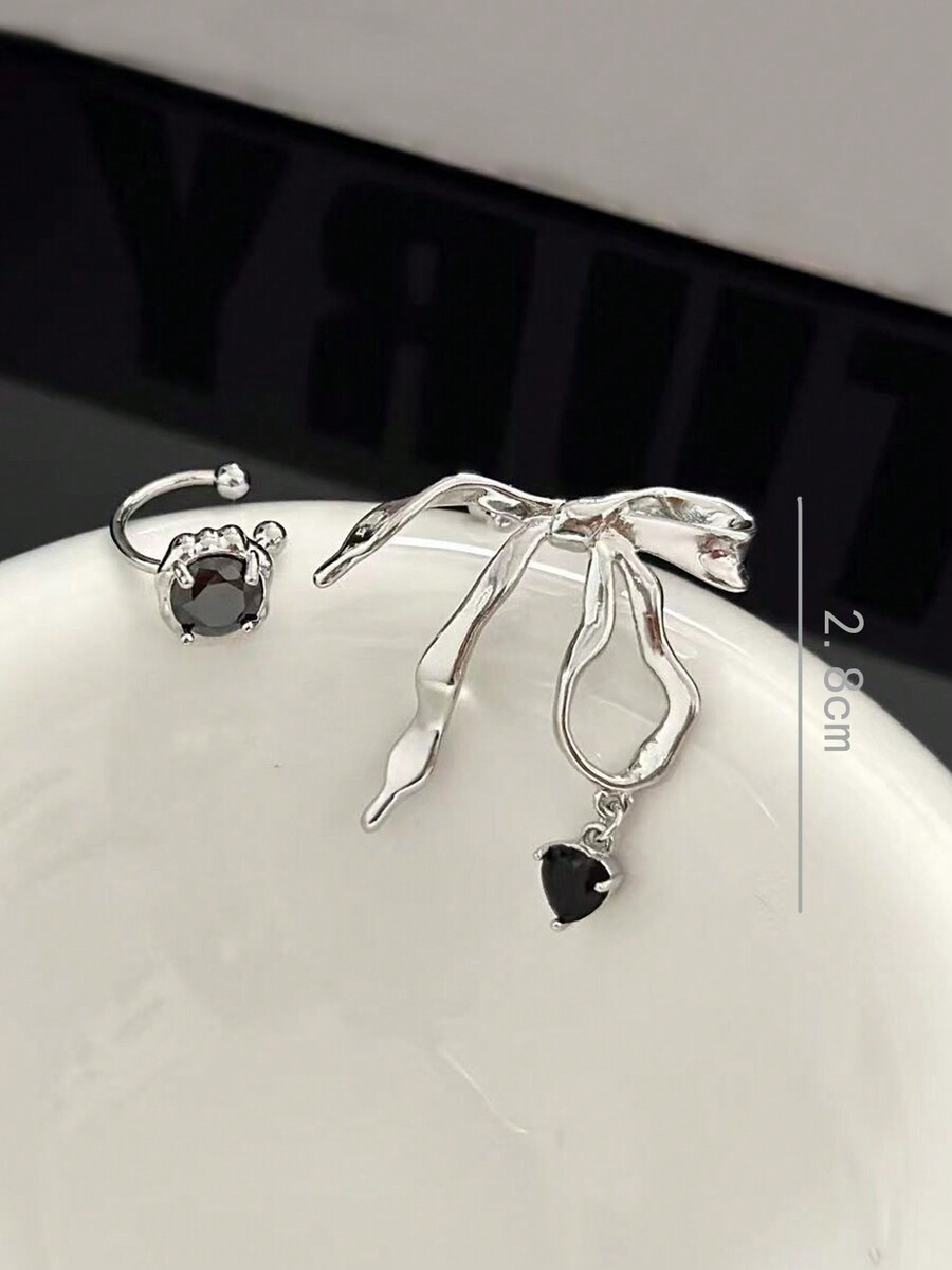 Kawaii 1 par Pendientes asimétrico negro con diseño de diamante con lazo