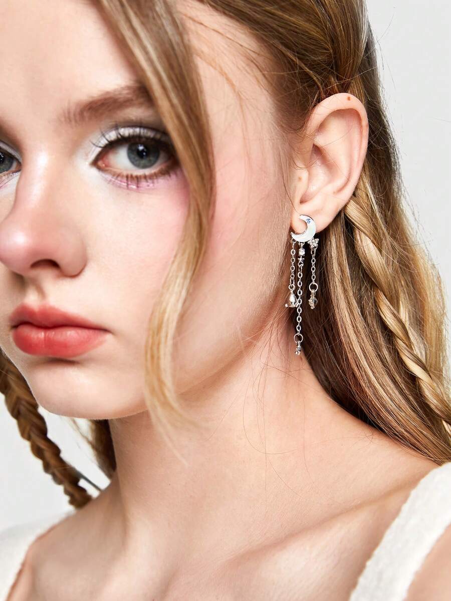Kawaii 1 par Pendientes atractivo hierro de aleación con diseño de luna y estrella para mujeres para regalo de citas