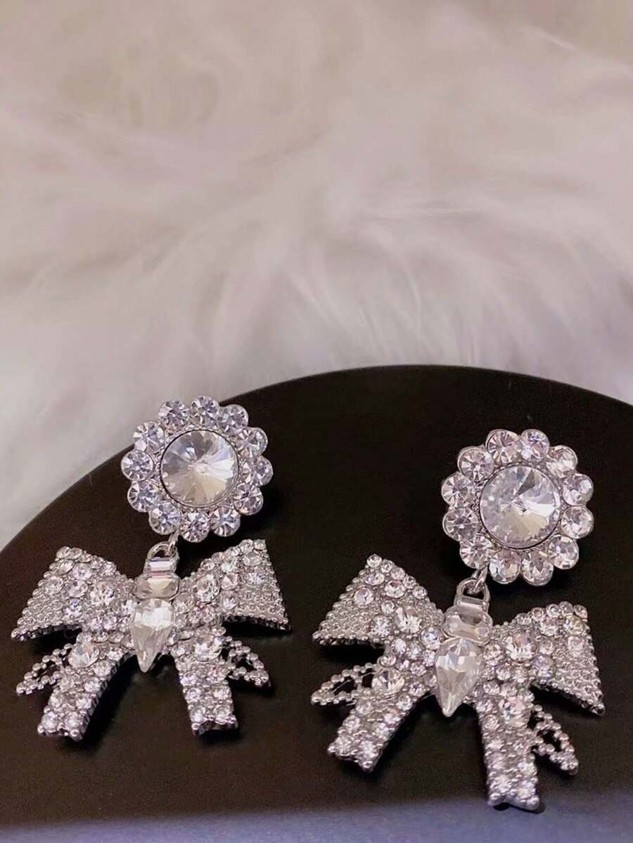 Kawaii 1 par de Pendientes de gota elegantes de estilo coreano para mujer con lazo de estrás